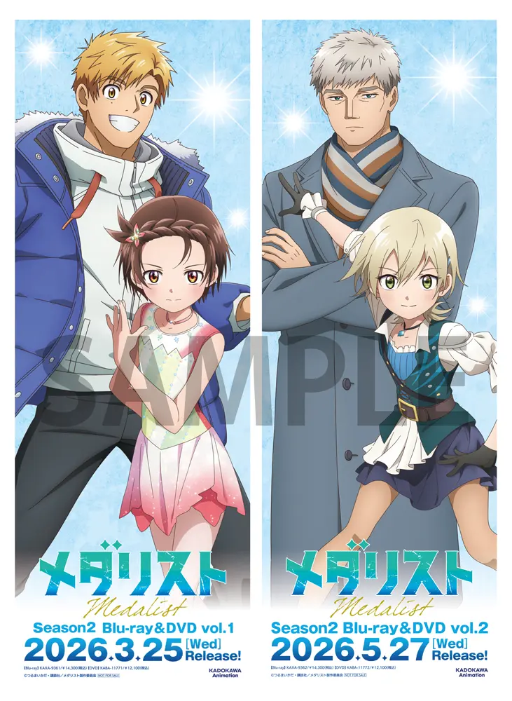 2026年3月25日発売予定 メダリスト Season2 Blu-ray vol.1 (KAXA-9361/¥13,000(税別)/¥14,300(税込)) メダリスト Season2 DVD vol.1 (KABA-11771/¥11,000(税別)/¥12,100(税込))