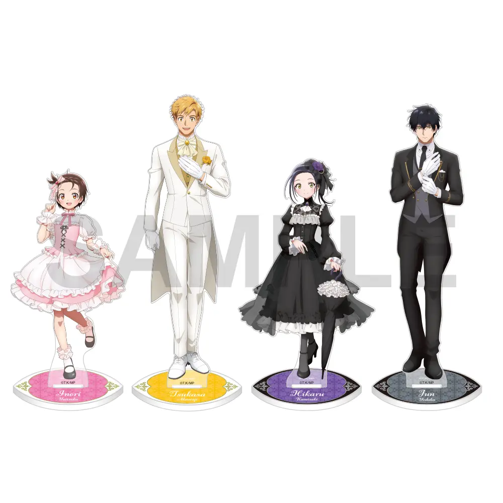 【価格】 各1,650円(税込) 【仕様】 全4種オープン サイズ: ●結束 いのり 本体…約W74mm×H114mm、台座…約W50mm×H41mm ●明浦路 司 本体…約W68mm×H150mm、台座…約W50mm×H41mm ●狼嵜 光 本体…約W60mm×H120mm、台座…約W50mm×H41mm ●夜鷹 純 本体…約W86mm×H147mm、台座…約W50mm×H41mm 材質:アクリル樹脂 生産国:日本