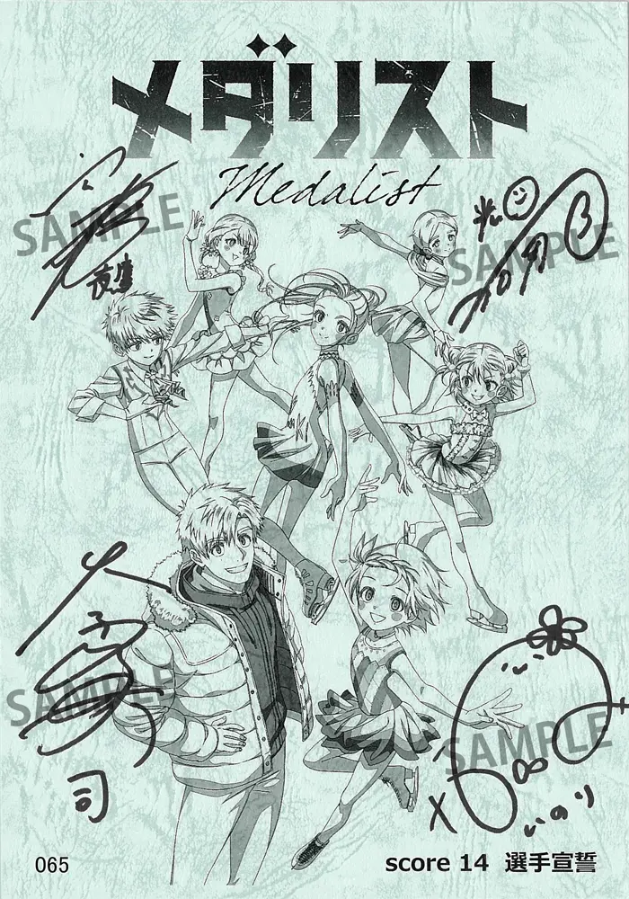 期間中、アニメイト開催店舗にて「メダリスト」関連のキャラクターグッズをご購入・ご予約内金税込1,100円毎、 書籍・CD・DVD・BDをご購入・ご予約(内金税込1,100円以上必須)1点毎に 【ブロマイド(全8種)】を1枚プレゼント!