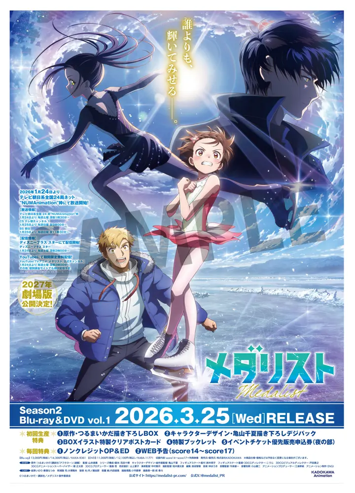 TVアニメ「メダリスト」Season2 Blu-ray&DVD vol.1の発売を記念して、アニメイト名古屋店にてTVアニメ「メダリスト」オンリーショップ 2026 in アニメイトが開催決定! 新作グッズの販売や、豪華景品がもらえる抽選会などを実施!さらにアニメイト新潟店、秋葉原店、大阪日本橋店、カドストでは応援店として新作グッズの取り扱いが決定!