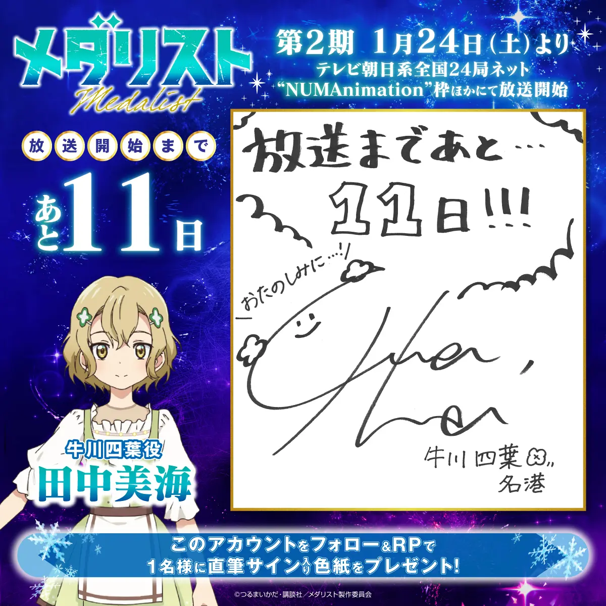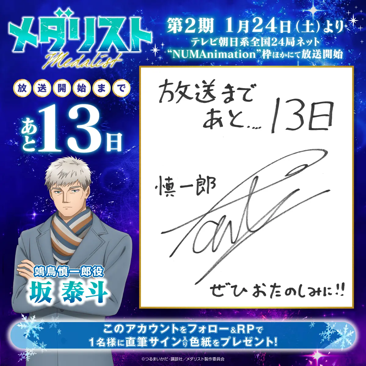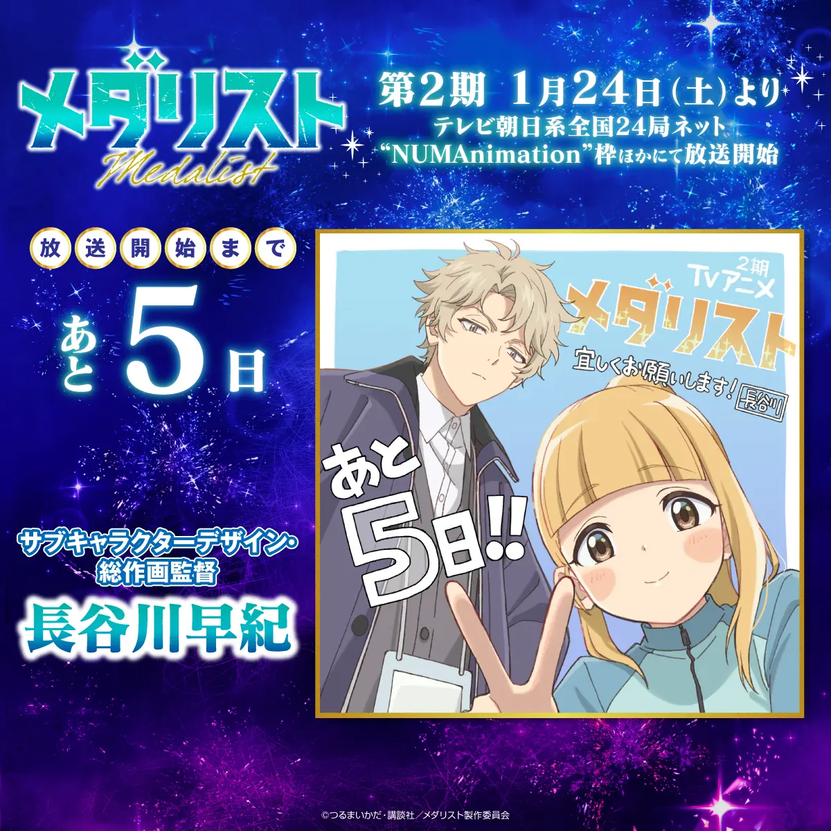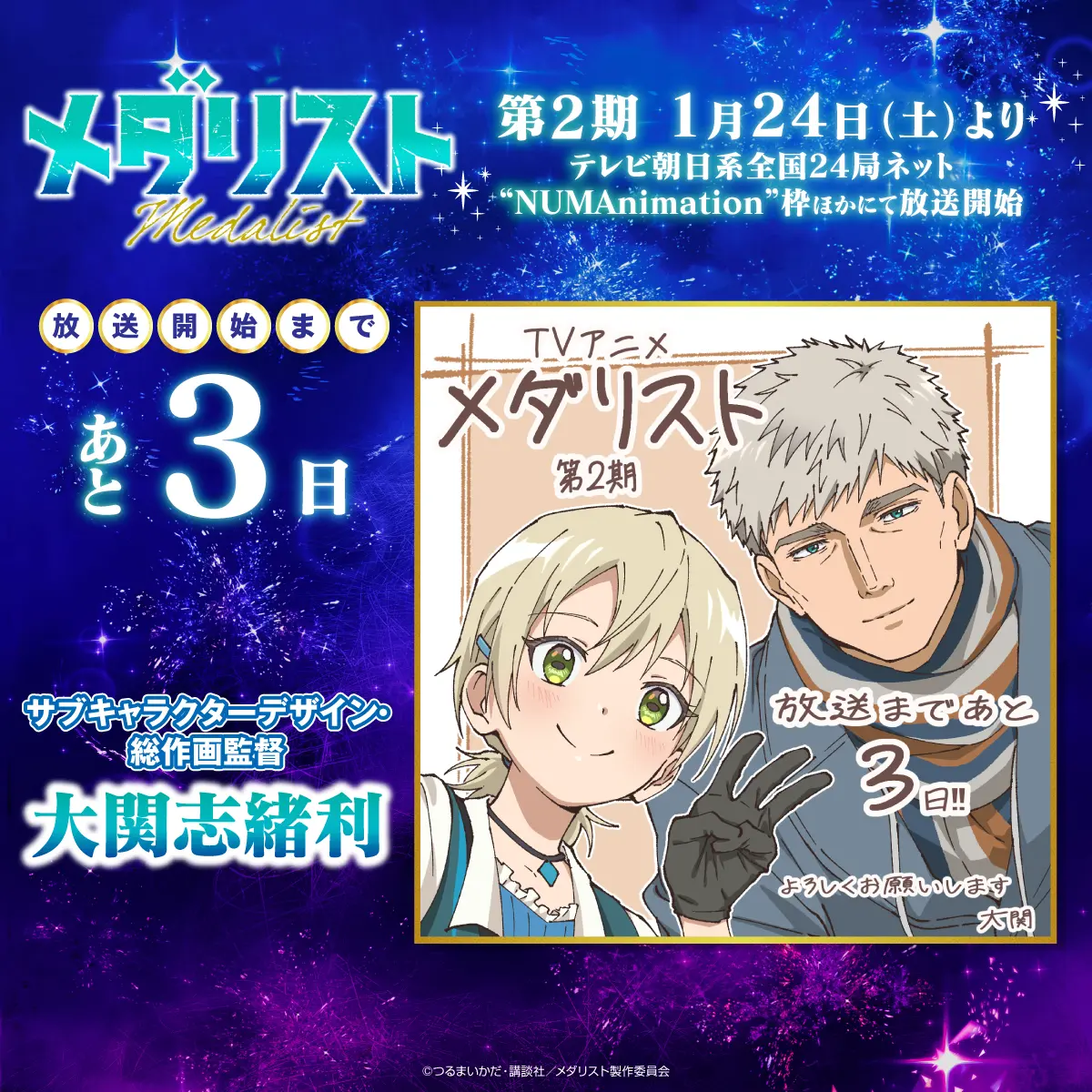カウントダウンプレゼントキャンペーンを実施します! 『メダリスト』アニメ公式アカウント(@medalist_PR)をフォローし、指定のキャンペーン投稿をリポストした方の中から、抽選でプレゼント!ぜひ奮ってご応募ください!