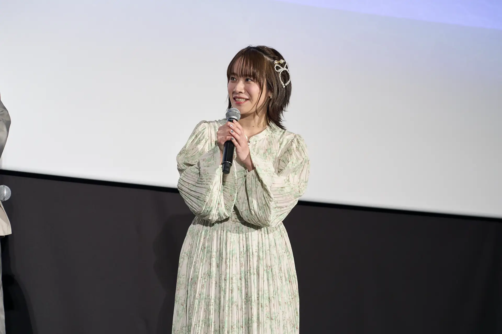 新キャラクターの八木夕凪を演じる阿部は「夕凪はすごく努力家でスケートに対してひたむき。自分の立場への責任感が見えるキャラクターです」と紹介。 「うちのりんなは…」と誇らしげに夕凪や光と同じ、名港ウィンド所属の申川りんなの名前を挙げた坂は「すごく感情を持っていかれます。作中で慎一郎が言っていた言葉を言ってあげたくなるキャラクター」と共感している様子。 大塚が「一番滑走で」とりんなの頑張りに触れると、坂は「練習通りにやるのが難しい一番滑走。手放しで褒めてあげたいです!」とりんなへの熱い思いを言葉にすると、会場から大きな拍手が湧き起こっていた。 「愛花は踊れる子」と春瀬が語ると、大塚も「輝いていました」とニッコリ。春瀬は続けて「踊れるだけじゃないんだぞ!っていうのも詰まっている素敵な子です」と笑みを浮かべて、魅力を語った。